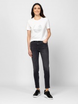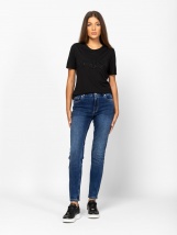 Dámské džíny s klasickým designem, 5 kapsami, zapínáním na zip, poutky na pásek, úzkým střihem, středně vysokým pasem, logovanými nýty a zapínáním na knoflík. Vyrobené z bavlny s p