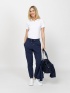 Dámské tepláky s klasickým střihem, gumovými manžetami, nastavitelným pasem a bočními kapsami. Materiál: 58 % bavlna, 38 % polyester, 4 % elastan, francouzské froté. Modelka měří 1