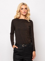 Dámské tričko s dlouhými rukávy přiléhavého střihu s dekorativním výstřihem, s tenkými lurexovými proužky, vyrobené z viskózové směsové tkaniny, malá kovová značka na přední straně. Materiál: 85% viskóza, 8% elastan, 5% nylon, 2% lurex.