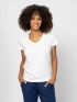 Dámské tričko s krátkým rukávem, úzký střih, výstřih do V, směs bavlny a modalu, s malým potiskem loga s kamínky na přední straně, tkaný štítek na boku. Materiál: 50 % bavlna, 50 %