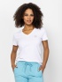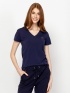 Dámské tričko s krátkým rukávem, úzkým střihem a výstřihem do V, s malým logem značky na přední straně. Materiál: 95% bavlna, 5% elastan, single jersey. Modelka měří 175 cm a nosí