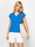 Dámské tričko s volným střihem, zdobeným výstřihem do V, spadlými rameny a malým logem značky na přední straně. Materiál: 50 % bavlna a 50 % modal, single jersey. Modelka měří 175