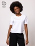Dámské tričko s krátkým rukávem, širší střih, kratší délka, kulatý výstřih, rukávy s klopami a potištěným logem. Vyrobeno z prémiového bavlněného vlákna pro jemný pocit, s příjemný