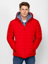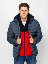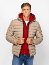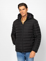 Pánská prošívaná bunda s kapucí s jemným lesklým povrchem, rovný pohodlný střih, nastavitelná odnímatelná kapuce, vnitřní a vnější kapsy na zip, malý kovový znak na rukávu. Materiá