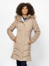 Dámský prošívaný zimní kabát s ženskou siluetou, délka ke kolenům, vnější větrná léga, nastavitelná a odnímatelná kapuce, odnímatelný kožíšek na kapuci, krátký límec s podšívkou z umělé kožešiny, kapsy na zip v švech, patentový rozparek na boku, malé kovové logo na rukávu a kapuci. Materiál: svrchní vrstva: 100% nylon, podšívka: 100% polyester, výplň: 100% polyester, umělá kožešina: 100% polyester. Modelka měří 175 cm a má na sobě velikost S.Méně informácí