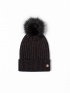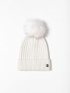 Dámská pletená čepice s lurexovou přízí, ozdobným bambulí a malým kovovým logem značky na boku. Materiál: 50% viskóza, 30% polyester, 10% polyamid, 10% lurex.