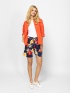 Dámské šortky s širokými nohavicemi, délka nad kolena, s bočními kapsami. Elastický pas se šňůrkou, vyrobené ze vzorované látky. Materiál: 100% viskóza. Modelka měří 175 cm a nosí velikost S.