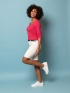 Dámské mírně elastické bermudy klasického střihu, s 5-mi kapsami. Zapínání na zip. Opasek není součástí kalhot. Materiál: 64% bavlna, 25% polyester, 9% viskóza, 2% elastan, twill. Modelka je vysoká 175 cm a má na sobě velikost M.Méně informácí