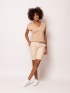 Dámské mírně elastické bermudy klasického střihu, s bočními švédskými kapsami a se dvěma zadními kapsami. Zapínání na zip. Opasek není součástí kalhot. Materiál: 97% bavlna, 3% elastan, twill. Modelka je vysoká 175 cm a má na sobě velikost M.Méně informácí