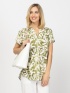 Dámská halenka s krátkým rukávem, rovný střih, výstřih do V, vzorovaná látka. Materiál: 100% viskóza. Modelka měří 175 cm a nosí velikost S.