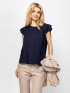 Dámská halenka bez rukávů s rovným střihem, kulatým výstřihem a nabíranými rameny. Materiál: 100% viskóza. Modelka měří 175 cm a má na sobě velikost S.