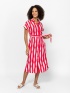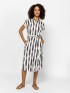 Dámské košilové šaty, délka pod kolena, zapínání na knoflíky, pas nastavitelný páskem. Krátké rukávy, spadlá ramena, boční kapsa, vyrobeno z vzorované látky. Materiál: 100% viskóza. Modelka měří 175 cm a má na sobě velikost S.