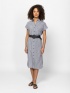 Dámské košilové šaty, délka pod kolena, zapínání na knoflíky, pas nastavitelný páskem. Krátké rukávy, spadlá ramena, boční kapsa, vyrobeno z vzorované látky. Materiál: 100% viskóza