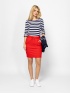 Dámská pouzdrová sukně, délka ke kolenům, s elastickým pasem a šňůrkou, vyrobená ze vzorované látky. Materiál: 50% viskóza, 48% polyester, 2% elastanový úplet. Modelka měří 175 cm