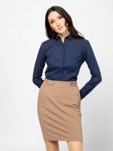 Dámská košilová halenka s úzkým střihem, dekorativním límečkem, skrytým zapínáním na knoflíky, manžetami na knoflíky, bavlněnou látkou s příměsí elastanu, elegantními vzory, vyšíva