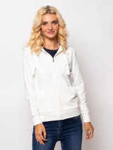 Dámská mikina s kapucí, elastickým žebrovaným lemem na rukávech a spodním lemu, dvěma kapsami na přední straně. Zapínání na zip, nastavitelná šířka kapuce. Materiál: 58 % bavlna, 38 % PES, 4 % elastan.Méně informácí