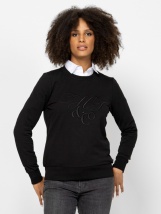Dámská mikina s klasickým střihem, kulatým výstřihem, žebrovaným lemem na spodním okraji a vpředu, vysoký podíl bavlny, vyšívané logo na přední straně, malé kovové logo na zadní st