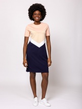 Dámské šaty s rovnými liniemi, sportovním střihem, vzrušujícími kombinacemi barev a malým kovovým logem na spodní části. Materiál: 63% viskóza, 32% nylon a 5% elastan. Modelka měří 175 cm a má na sobě velikost S.