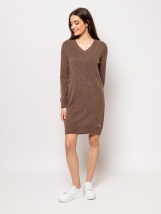Dámské pletené šaty rovného střihu s výstřihem do V, žebrovaným lemem kolem rukávů a na spodní části. Materiál: 68 % akryl, 12 % pes, 11 % nylon, 6 % vlna, 3 % elastan, úplet.