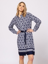 Dámské košilové šaty s rovným střihem, délkou nad kolena, dekorativním límcem, zapínáním na knoflíky, páskem, vzrušujícími vzory, snadno udržovatelnou tkaninou, malým kovovým logem