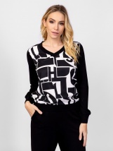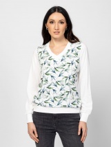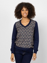 Dámské tričko s dlouhým rukávem, rozšířeným střihem, žebrovaným spodním lemem, předním dílem a výstřihem do V, dekorativními vzory, zadním dílem a rukávy ze směsi bavlny, předním d