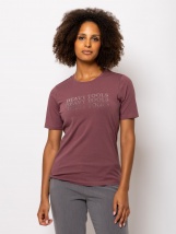 Dámské tričko s krátkým rukávem, kulatým výstřihem a potiskem na přední straně. Materiál: 95% bavlna, 5% elastan, jednoduchý žerzej.