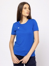 Dámské tričko s krátkým rukávem z rychleschnoucího, technického materiálu s pohodlným střihem a malým tištěným logem značky na přední straně. Modelka měří 175 cm a nosí velikost S.