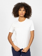 Dámské tričko s krátkým rukávem, rovný střih, kulatý výstřih, malý vyšitý logo značky na přední straně, vyrobeno z čisté bavlny. Materiál: 100% bavlna, single jersey. Modelka měří