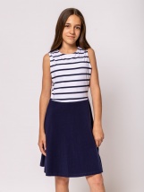 Dívčí šaty bez rukávů s délkou nad kolena, námořnické pruhy, malé kovové logo, elastická bavlněná tkanina. Materiál: 95% bavlna, 5% elastan, jednolícní jersey.