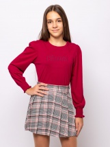 Dívčí tričko s dlouhým rukávem, kulatým výstřihem, nařasenými rukávy, ve vzrušujících barvách, zdobené na přední straně kamínky tone-in tone. Materiál: 50% bavlna, 50% modal, jednoduchý žerzej.