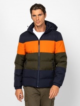 Pánská prošívaná bunda, vyrobená z mírně vodoodpudivé tkaniny, se zapínáním na zip, nastavitelnou odnímatelnou kapucí, předními kapsami na zip, vnitřními kapsami na zip, malým kovovým logem na rukávech. Materiál: svrchní vrstva: 100% polyester, podšívka: 100% polyester, výplň: 100% polyester. Model měří 188 cm a nosí velikost L.