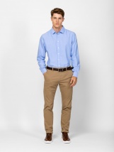 Pánské kalhoty z kepru s rovnými nohavicemi, pohodlný střih, vyrobené z bavlny s příměsí elastanu, zapínání na zip, úzké poutka na pásek. S přední kapsou, zadními kapsami na knoflí