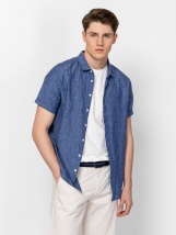 Pánská košile s pohodlným střihem, krátké rukávy, vyrobená ze směsi lnu. Materiál: 70% bavlna, 30% len. Model měří 188 cm a nosí velikost L.