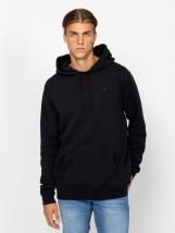 Pánská mikina s kapucí klasického střihu, s klokankou, žebrovanými manžetami a lemem, malým tištěným logem na přední straně. Materiál: 80 % bavlna, 20 % polyester, uvnitř česaný fleece. Model měří 188 cm a nosí velikost L.