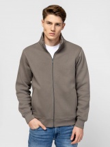 Pánská mikina na zip se stojáčkem, klasického střihu, v základních barvách, s rovnými kapsami, žebrovanými manžetami a lemem, malým tištěným logem vpředu a tkanou etiketou na boku.