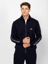Pánská mikina na zip se stojáčkem, sportovního střihu, s žebrovanými lemy na manžetách a spodním okraji, s kapsami na bocích, malým potiskem loga vpředu a ozdobnou páskou s logem na ramenou a rukávech. Noste s našimi tepláky ZAROW25 z nové kolekce. Materiál: 80 % bavlna, 20 % polyester, vnitřní strana česaný fleece. Model měří 188 cm a má na sobě velikost L.