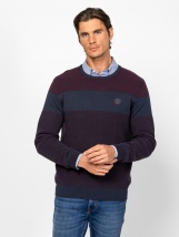 Pánský pletený svetr s klasickým střihem, vzrušujícími pletenými vzory a pruhy, kulatým výstřihem, žebrovanými manžetami, výstřihem a spodním lemem, malým logem značky vpředu. Materiál: 100% bavlna, pletenina. Model měří 188 cm a nosí velikost L.
