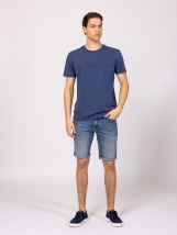 Pánské tričko s krátkým rukávem, rovným střihem, výstřihem a velkým potiskem značky tón v tónu na přední straně. Materiál: 100% bavlna, jednoduchý žerzej. Model je 188 cm vysoký a