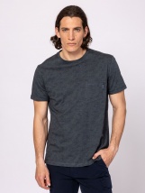 Pánské tričko s krátkými rukávy, rovný střih, kulatý výstřih, potištěný vzor, přední kapsa na hrudi, tkané logo na straně kapsy. Materiál: 100% bavlna, single žerzej. Model měří 18